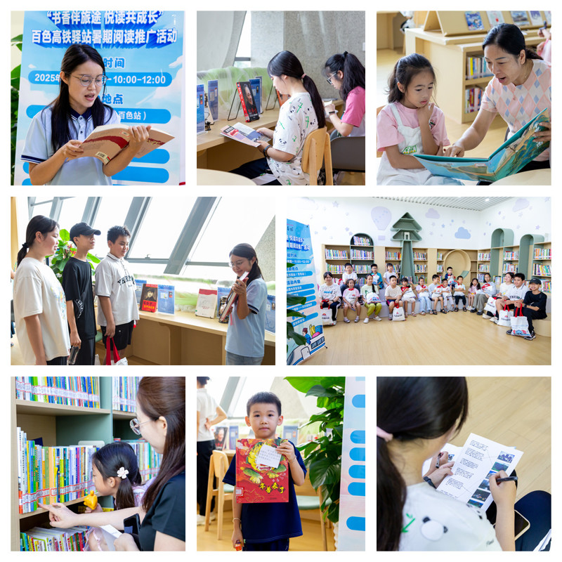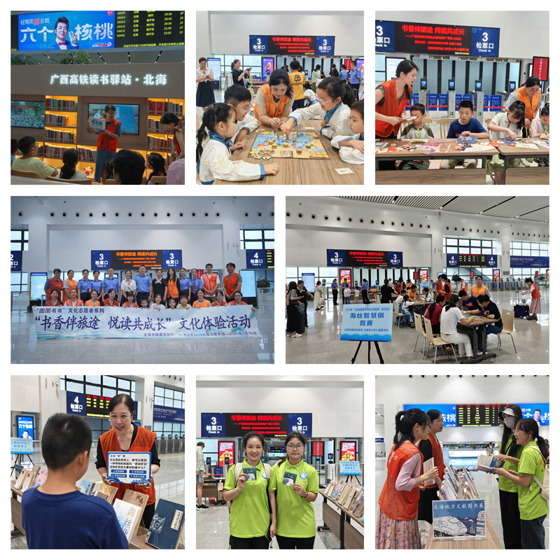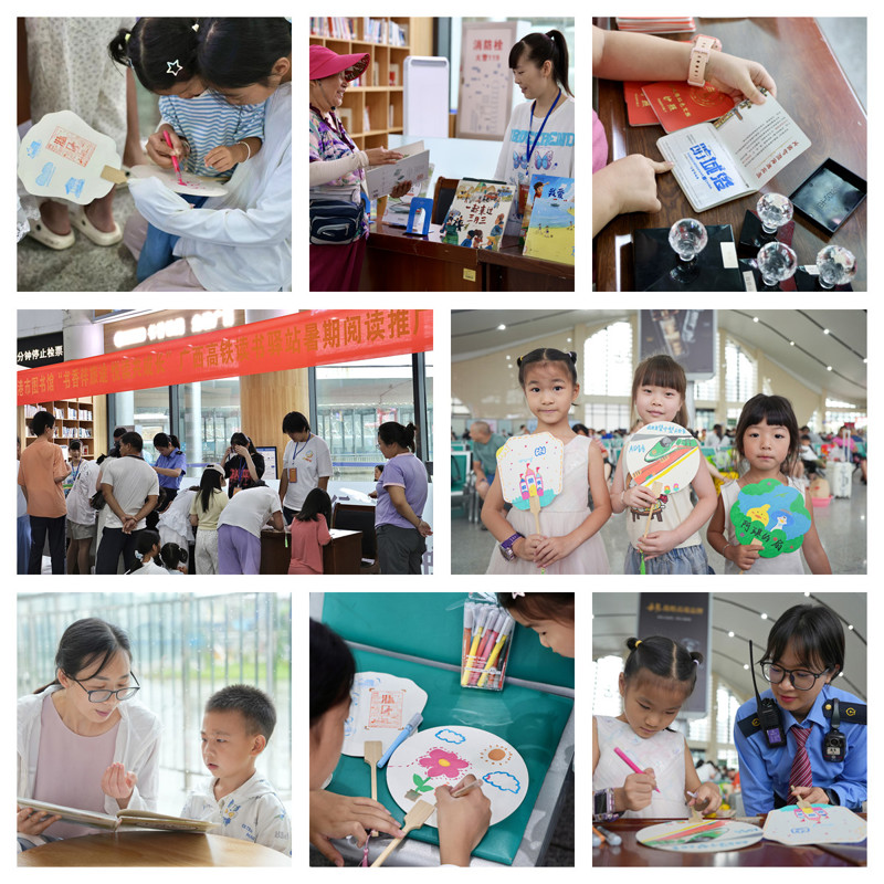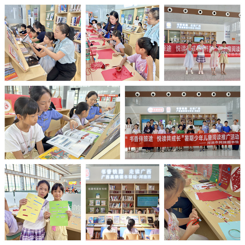 为丰富少年儿童暑期文化生活,营造浓厚的书香氛围,进一步推动全民阅读走深走实,广西图书馆联合中国铁路南宁局集团有限公司,联动全区有关市级以上公共图书馆与高铁站,依托广西高铁读书驿站“阅读·悦行”品牌,于7月13日至15日在全区14个高铁读书驿站举办“书香伴旅途 悦读共成长”主题阅读推广活动,吸引1万多名旅客共赴这场别开生面的夏日文化之旅。