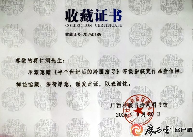 本次展览展出蒋仁润先生的100幅摄影获奖作品,涵盖其四十余载摄影生涯中的经典之作。这些作品以独特的视角记录了时代变迁与社会进步,展现了蒋先生对摄影艺术的执着追求与深刻思考。尤为值得一提的是,蒋仁润先生决定将这批珍贵的展出作品悉数捐赠给广西图书馆,成为该馆永久馆藏。这一义举不仅极大地丰富了广西图书馆的特色馆藏资源,更为后世留下了宝贵的视觉文献和精神财富。