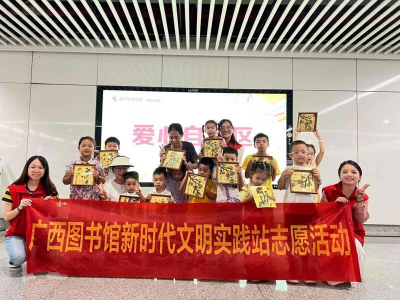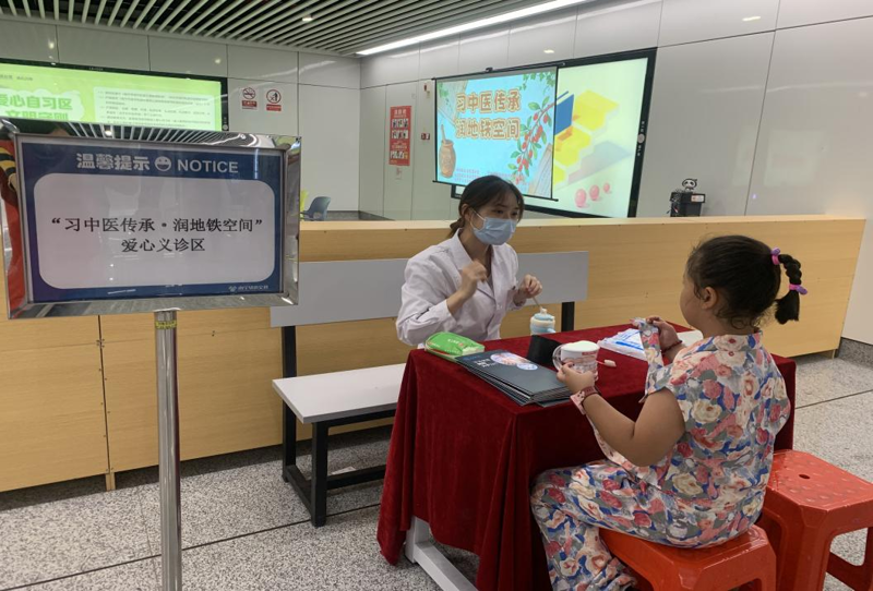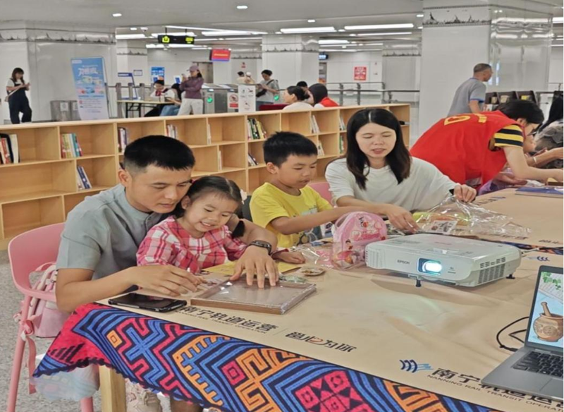 为进一步弘扬中华优秀传统文化,推动中医药知识普及,丰富市民文化生活,9月27日,广西图书馆依托新时代文明实践站,联合南宁轨道交通运营有限公司、南宁市青秀区民族大道中段社区以及当地医疗健康机构,在地铁3号线青竹立交爱心站开展“习中医传承·润地铁空间”志愿服务活动,让中医药文化在地铁空间焕发活力,吸引了近百名小朋友与家长热情参与。