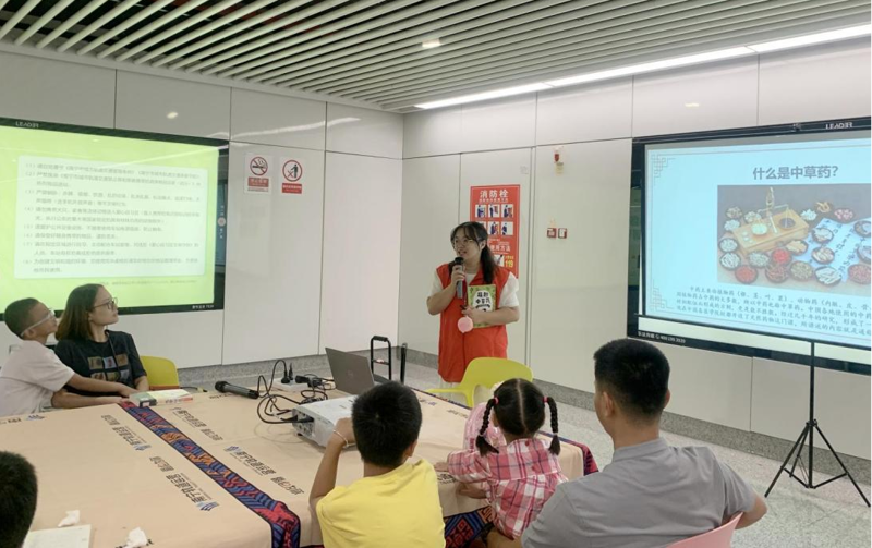 活动伊始,广西图书馆志愿者橙子老师巧妙融入“枸杞”“艾草”等中医药材的小故事,引导孩子们在轻松互动中近距离感受中医药文化的魅力。课堂还融入了精神文明宣传及铸牢中华民族共同体意识宣传教育,让孩子们在聆听中增强对传统文化的认同感与民族凝聚力。随后,南宁轨道交通的志愿者以“我与地铁共成长”为题,用生动风趣的小故事向大家普及了地铁线路设计与安全乘车等知识。