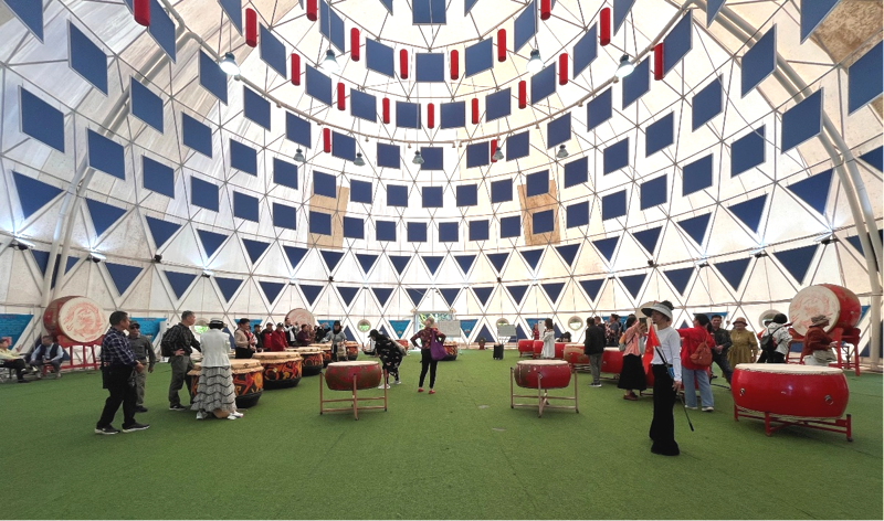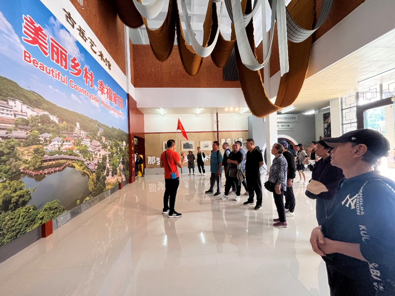 活动当天,老干部们漫步古岳民族文化艺术村,不时驻足拍照,陶醉在青砖黛瓦、错落庭院与民族风情相映成趣的惬意中。南阳大鼓体验区内,大家跟随老师学习击鼓,铿锵鼓点回荡村落,尽显昂扬风采,触摸传统民俗的底蕴;扎染体验区里,大家细致观赏斑斓纹样,感受非遗文化的独特魅力;民俗文化展厅中,大家慢慢浏览民俗老物件与图文资料,村落历史与民族文化脉络清晰地呈现在眼前;音乐厅里,大家齐坐一堂观看电影《长安的荔枝》,“穿越”盛唐与主角共情,也忆起自身的奋斗时光,产生强烈共鸣。