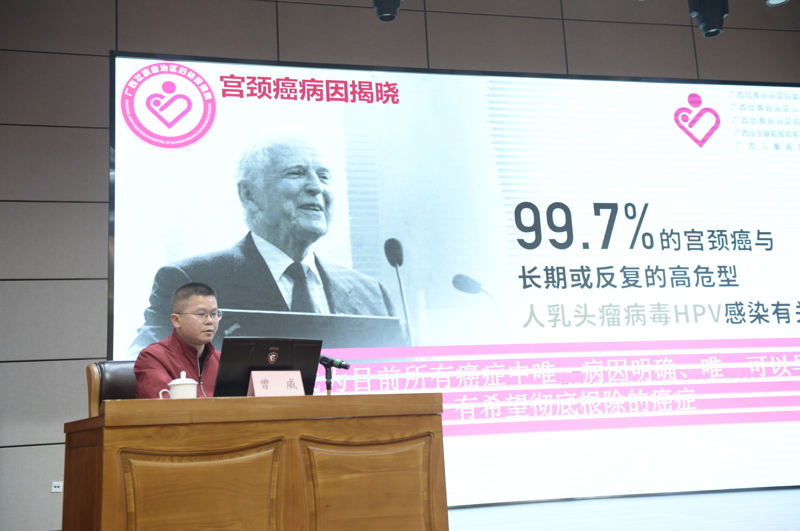 宣讲环节中,广西妇幼保健院三位专家围绕职工普遍关注的健康话题,开展了针对性的专题分享。王瑶医师聚焦职场人士常见的颈肩腰腿痛、视力疲劳、心理压力等问题,系统讲解了中医调理的科学方法,并现场示范了简单易操作的保健体操,引导职工在工作间隙科学舒缓身体不适;陈晖技师围绕儿童青少年“五健”促进行动,详细介绍了儿童青少年生长发育、视力保护、心理健康等相关知识,为职工家长提供了科学的育儿指导;曾威主任医师则围绕HPV与宫颈癌预防这一核心议题,用通俗易懂的语言普及了疾病预防知识、筛查方法及防护措施,进一步提升了女性职工的自我防护意识。