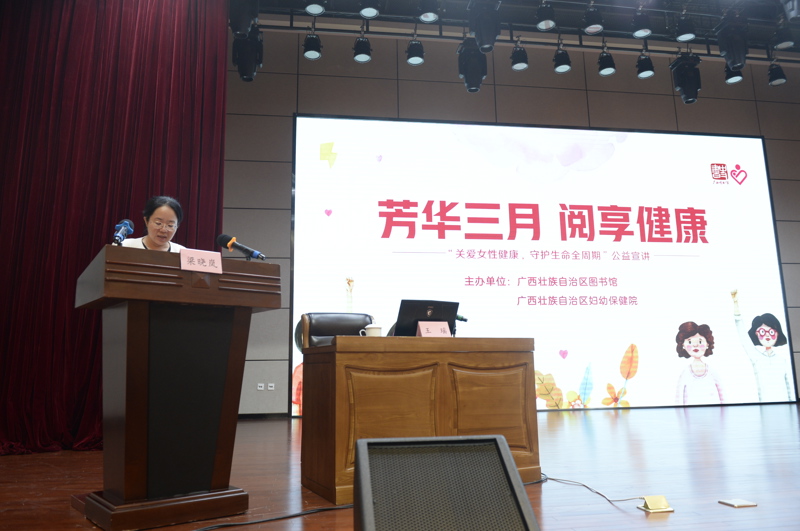 为深入贯彻落实健康中国战略,切实关爱职工身心健康,提升职工自我保健能力,3月26日下午,广西图书馆工会联合广西妇幼保健院,在广西图书馆地方民族文献中心大楼二楼报告厅举办“芳华三月 阅享健康”公益宣讲活动,90余名职工参加了此次活动。活动以“关爱女性健康,守护生命全周期”为核心主题,通过主题授课、实操教学、互动答疑等丰富形式,为广大职工提供了专业、实用的健康科普指导。