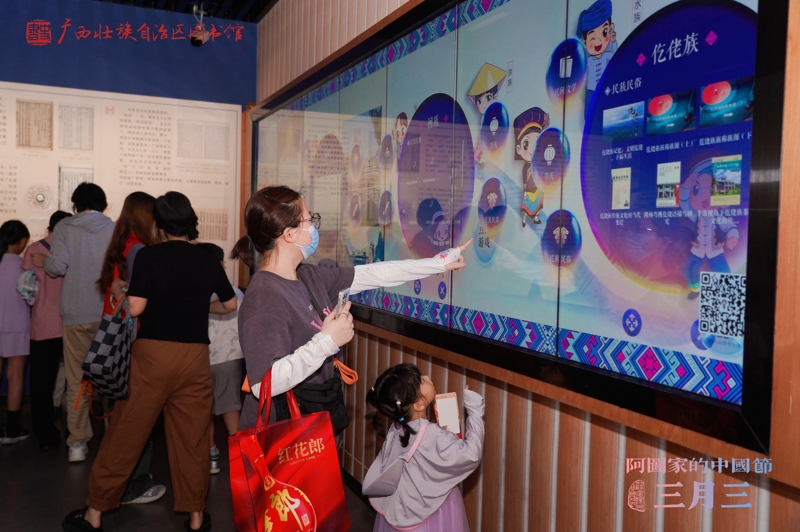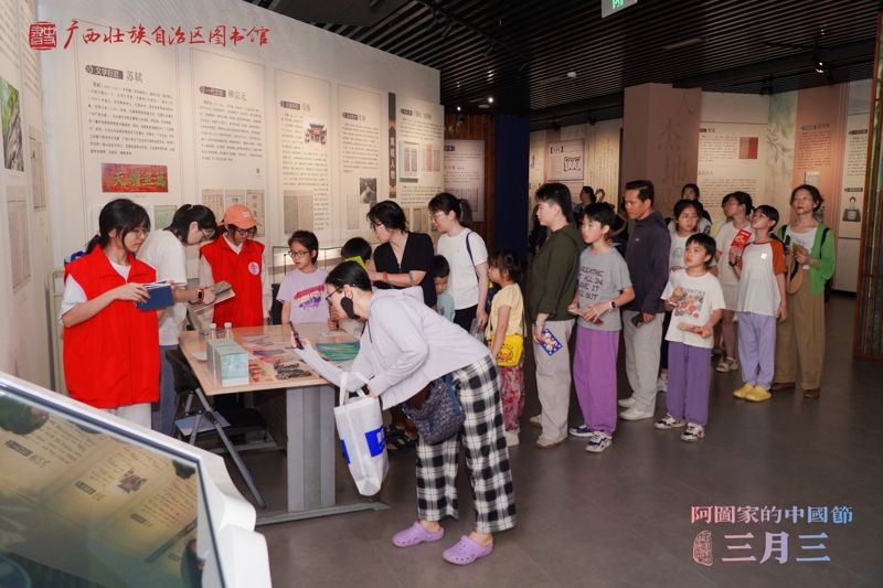 三月春风暖,壮乡歌飞扬。当非遗壮锦遇上浓浓书香,一场独具壮乡风情的文化盛宴在广西图书馆温情启幕。4月12日,广西图书馆举办2026年“阿图家的中国节·三月三:锦韵书香·阅见八桂”系列阅读推广活动,抛绣球、壮锦知识问答、打卡集章、雕版印刷、唱山歌等项目齐现游园会,吸引了超过1300人次参与,在书香与欢歌中共度三月三佳节。