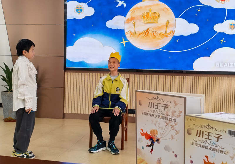 孩子们带来精心编排的《小王子》沉浸式阅读无障碍剧本片段表演,成为此次活动中最动人的环节。他们通过反复研读剧本、深入揣摩角色,将小王子的纯真与孤独、狐狸的智慧与温情演绎得细腻动人。他们的声音时而轻柔低语,时而清亮如歌,每一处停顿都恰到好处,肢体动作和细节表达传递着角色的情感。现场观众屏息聆听,用心感受成长中“爱”与“陪伴”的深刻内涵。