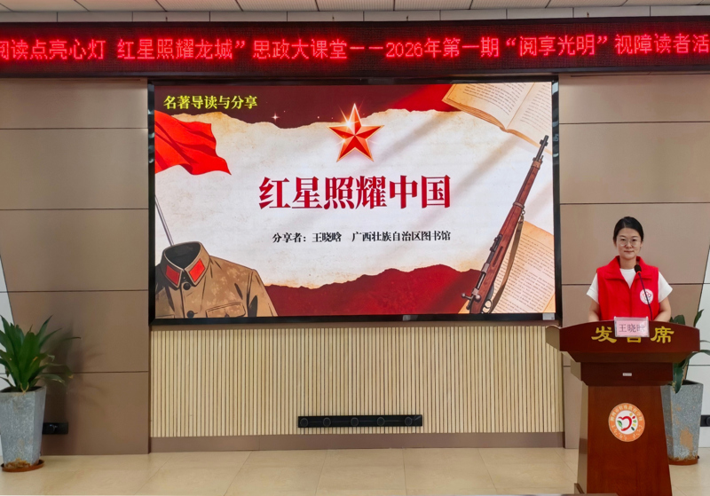 春风送暖,书香沁心。为深入推进全民阅读,4月9日,广西图书馆携手柳州市特殊教育学校,开展一场融合红色教育、文学体验与非遗实践的文化活动,为视障孩子们开启了温暖的书香之旅。在“阅读点亮心灯 红星照耀龙城”活动主题引领下,馆校协同的创新育人模式绽放新光彩。