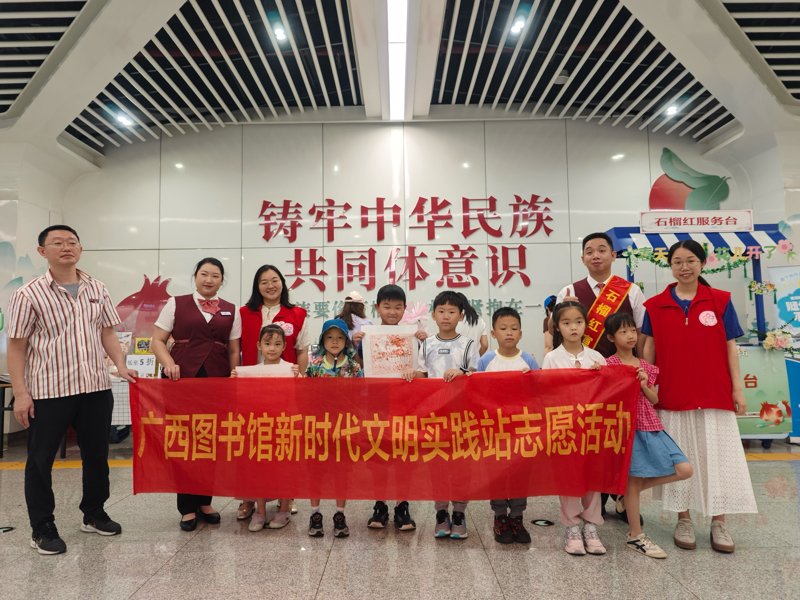 为深入推进全民阅读,丰富市民精神生活,4月11日,广西图书馆依托新时代文明实践站,联合南宁轨道交通运营有限公司、南宁书城文化有限责任公司,在地铁三号线青秀山站开展“书香地铁·阅见美好”全民阅读主题志愿服务活动。活动精心设置了经典诵读、读书分享、知识问答、雕版印刷体验等环节,并同步宣传精神文明建设、铸牢中华民族共同体意识相关知识,通过多元文化体验和公益志愿服务,切实履行公共图书馆传播文化、服务市民的职责。