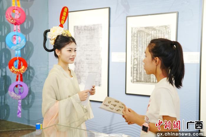 游园会特别策划的展厅寻宝环节,巧妙地将广西图书馆殷墟甲骨与居延汉简、典籍中的八桂文化展、广西人口较少民族拓片展3大常设展览串联,读者手持寻宝题卡,通过解锁识读甲骨文、寻找并背诵广西古诗词等任务,穿越时空与历史对话,在破解文化密码的过程中,感受八桂千年文脉的深邃与厚重。