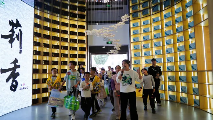 当天下午,莉香茶叶非遗博物馆内茉莉花香浮动,读者们跟随讲解员参观“千年茉莉 传世之香”文化展区,从茉莉花茶的起源、发展到横州与茉莉的千年情缘,系统了解这朵“人间第一香”的文化脉络。