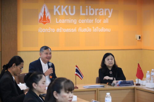 เมื่อวันที่ 11 กุมภาพันธ์ 2569 สำนักหอสมุด มหาวิทยาลัยขอนแก่น นำโดย รศ.นพ.สุพัชญ์ สีนะวัฒน์ ผู้อำนวยการสำนักหอสมุด และคณะผู้บริหารให้การต้อนรับคณะผู้บริหาร จากหอสมุดเขตปกครองตนเองกว่างซีจ้วง (Library of Guangxi Zhuang Autonomous Region) สาธารณรัฐประชาชนจีน จำนวน 6 ท่าน ในโอกาสเดินทางเยือนมหาวิทยาลัยขอนแก่น เพื่อเข้าพบปะหารือและเยี่ยมชมการดำเนินงานอย่างเป็นทางการ การมาเยือนครั้งนี้มีวัตถุประสงค์เพื่อแสวงหาแนวทางในการสร้างความร่วมมือทางวิชาการและแลกเปลี่ยนองค์ความรู้ระหว่างสองสถาบัน