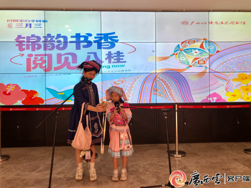 锦韵书香润八桂,民俗悦读庆佳节。4月12日,广西图书馆举办2026年“阿图家的中国节·三月三:锦韵书香·阅见八桂”系列阅读推广活动。抛绣球、壮锦知识问答、打卡集章、雕版印刷、唱山歌等丰富多彩的游园活动,吸引了约1300名读者走进图书馆,沉浸式体验八桂文化魅力。