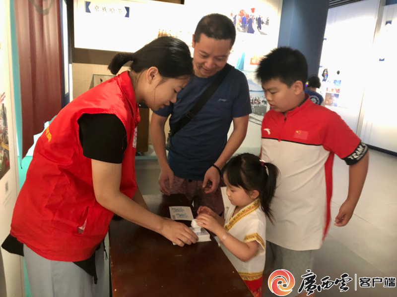 在“钟灵毓秀 桂生于斯——典籍中的八桂文化展”展厅内,区图精心推出“悦享云图:踏歌寻典·集章入画”互动打卡活动,以数字科技为桥,让读者在移步易景中品读典籍之美。在广西十二世居民族智能交互屏前,读者指尖轻触即可穿越民族画卷,解锁多彩民俗,完成互动便能收获精美明信片;步入“廖江竹枝词”沉浸式互动空间,读者在光影与诗词交融中感受桂地人文韵味,体验之后可加盖专属文创印章,留存书香记忆;在“历史名人互动墙”,读者集齐明信片和印章可参与幸运抽奖。