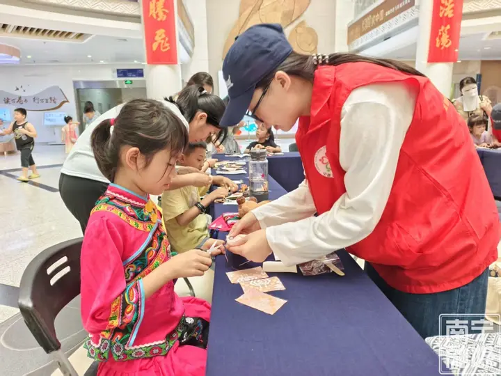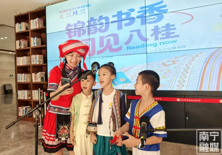 活动期间,广西壮族自治区图书馆还精心策划了“一锦藏千年·一问知八桂”知识问答、“踏歌寻典·集章入画”互动打卡等活动,将八桂民俗、非遗技艺与图书馆公共文化服务深度融合,并为读者们准备了劝学书签、壮锦小马挂件、壮锦扇子等文创好礼。一系列有趣的活动不仅丰富了广大读者的精神文化生活,更让民族文化在沉浸式体验中得到了活态传承。