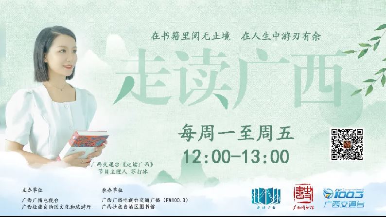 《走读广西》是一档由广西壮族自治区文化和旅游厅、广西广播电视台主办,广西壮族自治区图书馆及广西广播电视台交通广播承办的文化阅读融媒体栏目。在“读”与“行”中汲取前行的力量,围绕我区各地优质文旅资源共同策划打造覆盖全网多个平台的融媒体产品,通过一本本桂版好书、一场场精品文旅主题活动,为受众打开了解广西的窗口,让阅读真正成为一种生活方式。