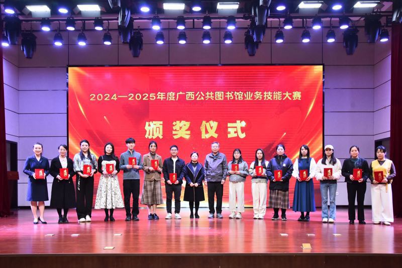 为深入贯彻落实党的二十届四中全会精神和习近平文化思想,推动广西公共文化服务精准化转型升级,2025年11月19日,由自治区文化和旅游厅、自治区总工会主办,广西图书馆学会承办的“2024—2025年度广西公共图书馆业务技能大赛”在南宁圆满落幕。自治区文化和旅游厅二级巡视员何晓萍、公共服务处处长曾彤,自治区总工会网络和职工技术协作中心主任陈晓勇,广西图书馆学会理事长秦小燕出席并为获奖选手颁奖。