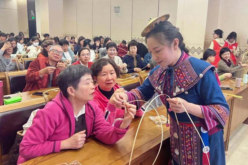 编织体验环节将活动推向高潮。“竞答赢好礼”点燃全场热情,读者踊跃参与;随后的动手体验环节,覃敏通过视频教学、现场示范和个别指导,带领读者亲手制作竹编作品。大家全神贯注、交流互助,完全沉浸在非遗手作的乐趣中。