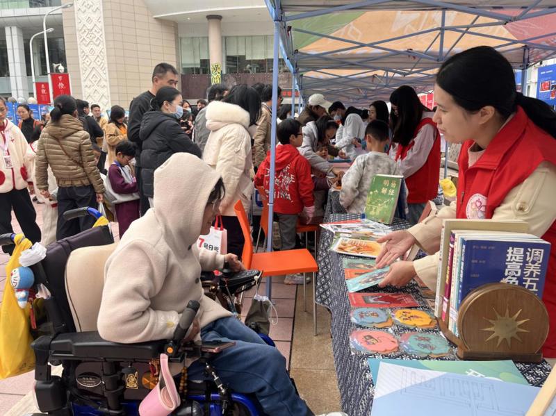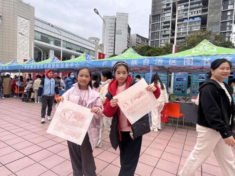 活动体验区巧妙将健康服务与阅读空间有机融合,构建出“可听、可看、可体验”的沉浸式健康文化场景。健康主题图书文创展精选养生保健、心理健康类图书供读者借阅;特色文创产品更是吸引众多目光;雕版印刷体验让读者在动手实践中放松身心,感受传统文化和健康养生的双重魅力;有奖知识问答融入精神文明与民族团结内容,在互动中普及健康知识,增添活动趣味性。