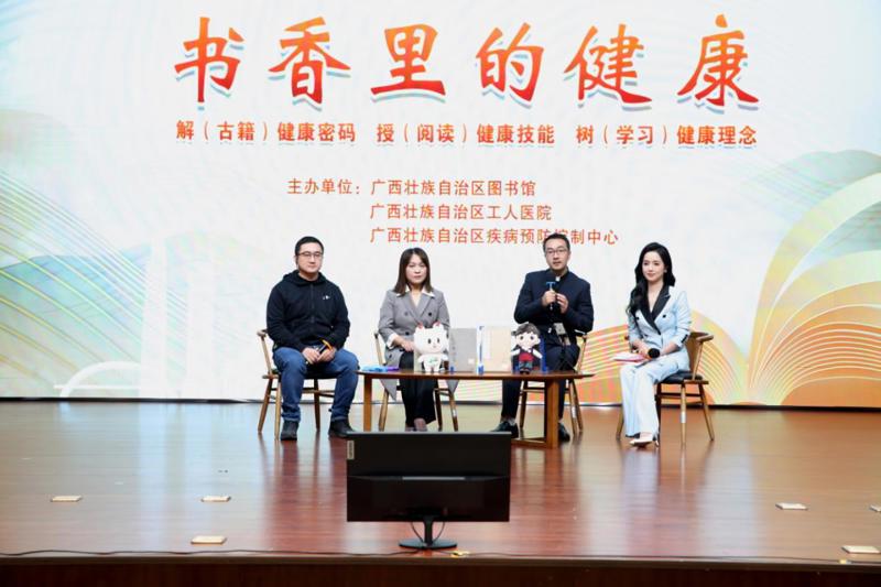 2025年12月27日,广西图书馆携手广西工人医院、广西疾病预防控制中心,联合举办“书香里的健康”主题健康联建直播活动。活动采取“现场分享+沉浸体验+健康义诊”的创新模式,通过线上线下联动,打破文化服务与健康服务的传统边界,为读者打造了一场精准化、场景化的健康文化盛宴,切实将书香滋养与健康守护送到群众身边。