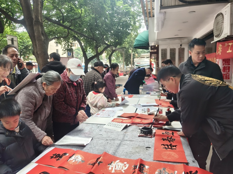 新春将至,暖意渐浓。为深入贯彻落实习近平总书记关于精神文明建设的重要论述,大力弘扬“奉献、友爱、互助、进步”的志愿精神,2月4日,中共广西壮族自治区图书馆委员会依托新时代文明实践站,联合南宁市青秀区民族大道中段社区、南宁市东葛卫生服务中心等多家单位开展“墨润书香送祝福 志愿暖心伴新春”志愿服务活动。