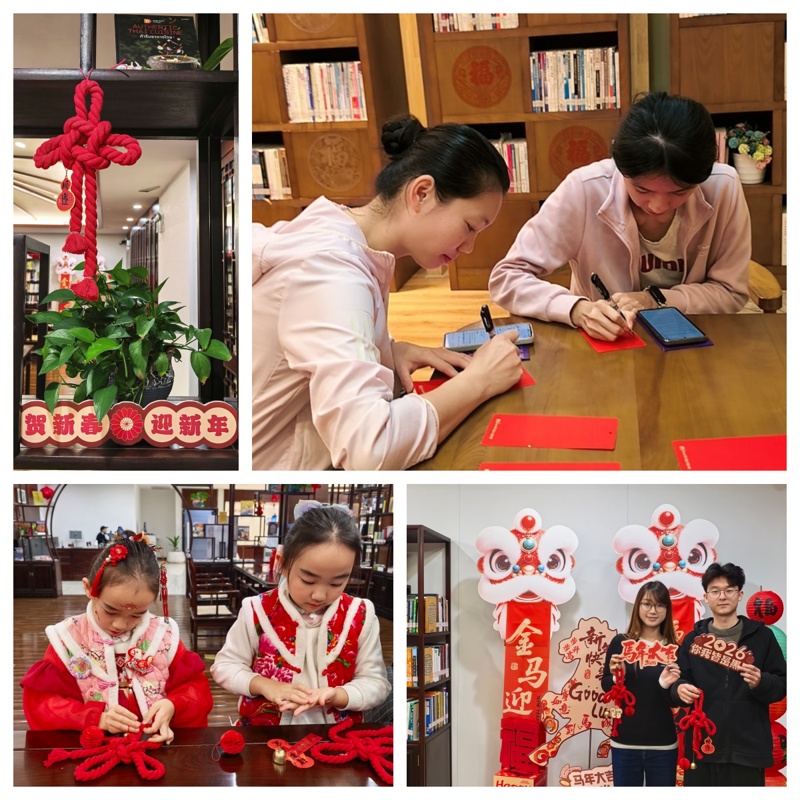 2月7日至8日,“马踏春禧·创意吉祥年”活动现场,外语祝福与手工体验相结合,让跨语言交流在温馨互动中自然发生。读者用英语、泰语、越南语、印尼语等东盟国家官方语言互道新年祝福,写下多语种新年福卡,并体验制作寓意吉祥的创意中国结。