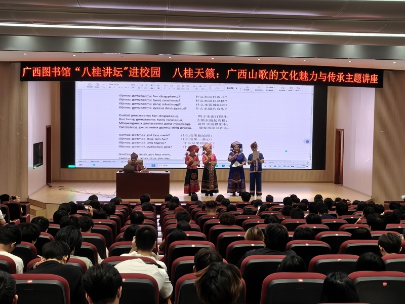 此次“八桂讲坛”进校园活动,以知识性、艺术性与互动性兼具的内容,为即将到来的“三月三”民族节庆增添了浓郁的文化书香,为新时代广西山歌的活态传承注入了青春活力,也充分展现了图书馆在推动民族文化传播中的积极力量。