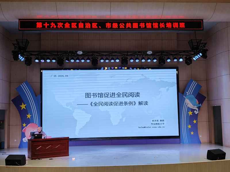 第十九次全区自治区、市级公共图书馆馆长培训班的成功举办,既是深入贯彻落实国家公共文化服务体系建设要求,推动《全民阅读促进条例》落地见根、见行见效的具体实践,也是凝聚行业共识、提升管理人员履职能力、破解事业发展难题的重要举措。通过集中授课、交流研讨与实践体验,学员们进一步夯实了专业基础、提升了综合素养和履职能力,明确了“十五五”时期全区公共图书馆事业高质量发展方向,有效凝聚了上下同心、协同发力,推动公共文化服务提质增效的强大合力。下一步,全区各级公共图书馆将以此为新起点,立足职能定位、坚守文化初心、践行服务使命,聚焦全民阅读推广、智慧图书馆建设、地方文化传承等重点任务,补短板、强弱项、创特色、树品牌,持续扩大公共文化服务覆盖面、提升服务实效性,让书香浸润八桂大地、滋养人心,为建设新时代文化强区、推动全区公共文化事业高质量发展贡献图书馆的力量。