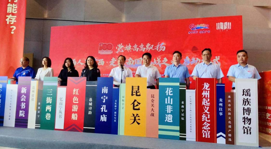 6月18日上午,“党旗高高飘扬——广西人游广西·走读南国抗战之旅”活动启动仪式在南宁市图书馆隆重举行。活动以“党旗高高飘扬”为主题,首次将“广西人游广西”这张旅游名片与“走读广西”文化名片相融合,充分挖掘和利用公共图书馆馆藏资源和各地红色文化。